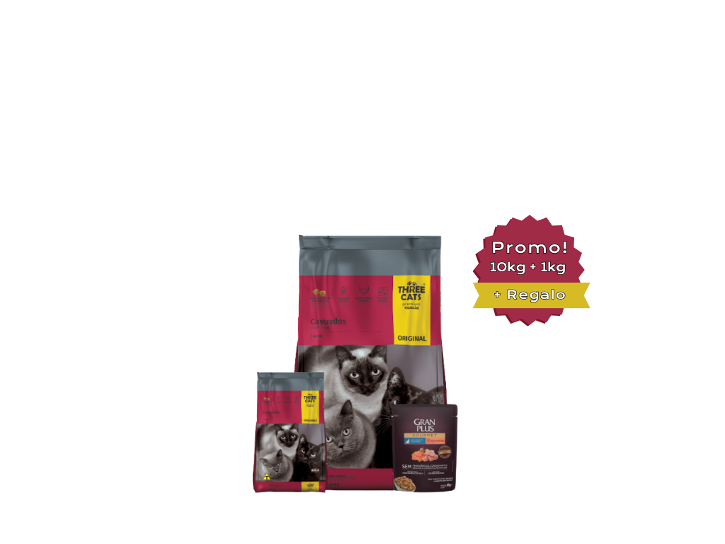 Three Cats Familia Original Castrados es un alimento premium especialmente formulado para gatos adultos esterilizados. Su receta ofrece un equilibrio nutricional adecuado para ayudar a mantener el peso corporal ideal y cuidar la salud del sistema urinario, con ingredientes seleccionados que garantizan una alimentación sabrosa, segura y saludable.