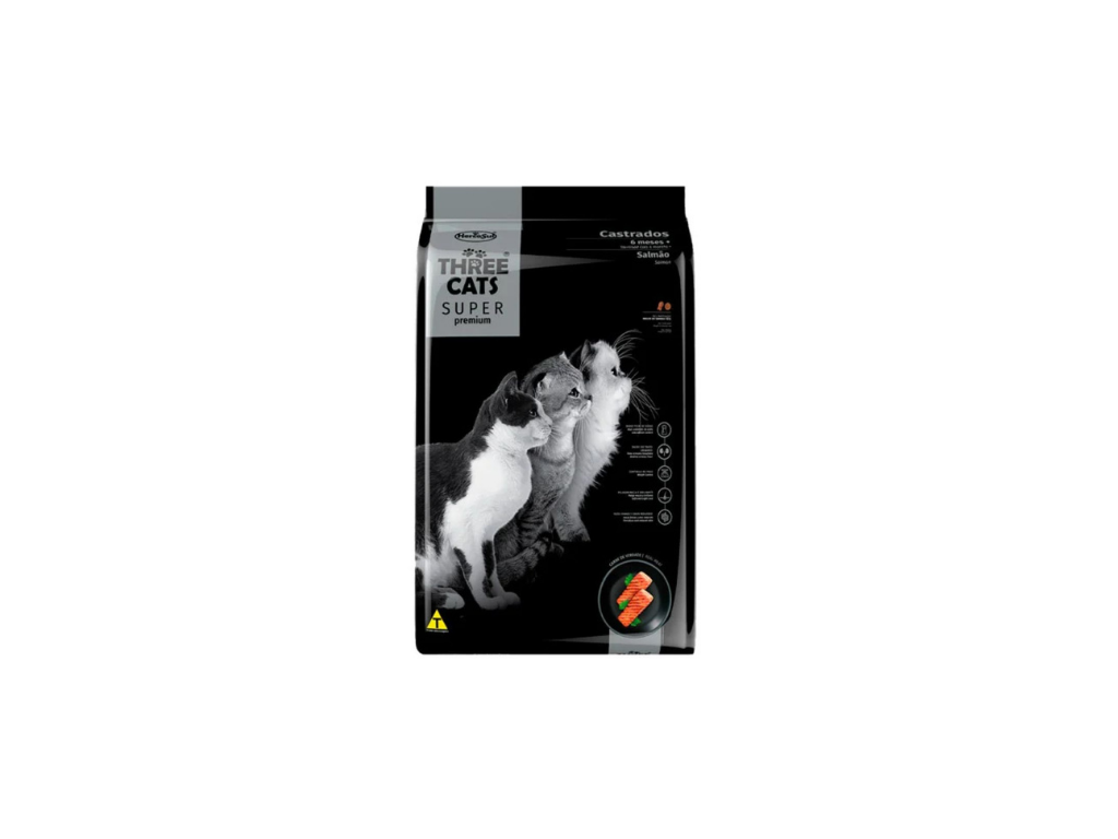 Three Cats Super Premium Salmón para Gatos Castrados es un alimento de alta calidad desarrollado especialmente para gatos adultos esterilizados. Con salmón como fuente principal de proteína, su fórmula ayuda a mantener el peso ideal, cuidar la salud del tracto urinario y ofrecer una nutrición completa y equilibrada, con ingredientes seleccionados y de excelente digestibilidad.
