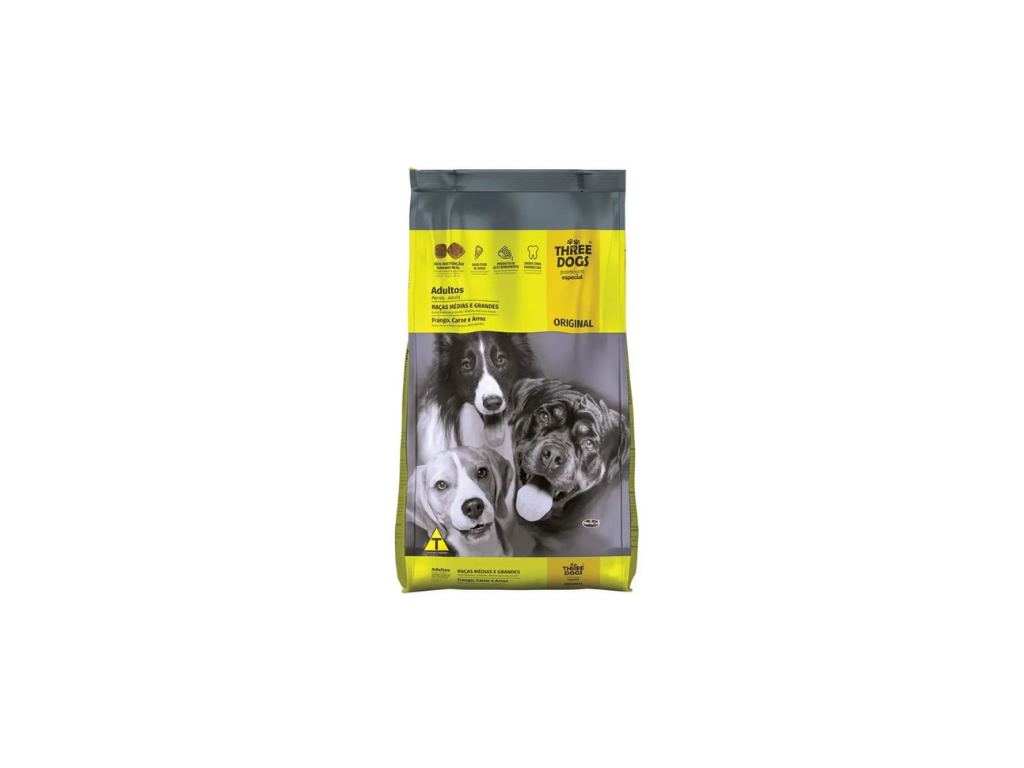 Three Dogs Familia Original es un alimento premium especialmente formulado para perros adultos de razas medianas y grandes. Su fórmula equilibrada y nutritiva proporciona todos los nutrientes esenciales que tu perro necesita para mantenerse sano, activo y feliz. Esta presentación incluye 2kg extra gratis, ideal para quienes buscan calidad y economía en un solo producto.