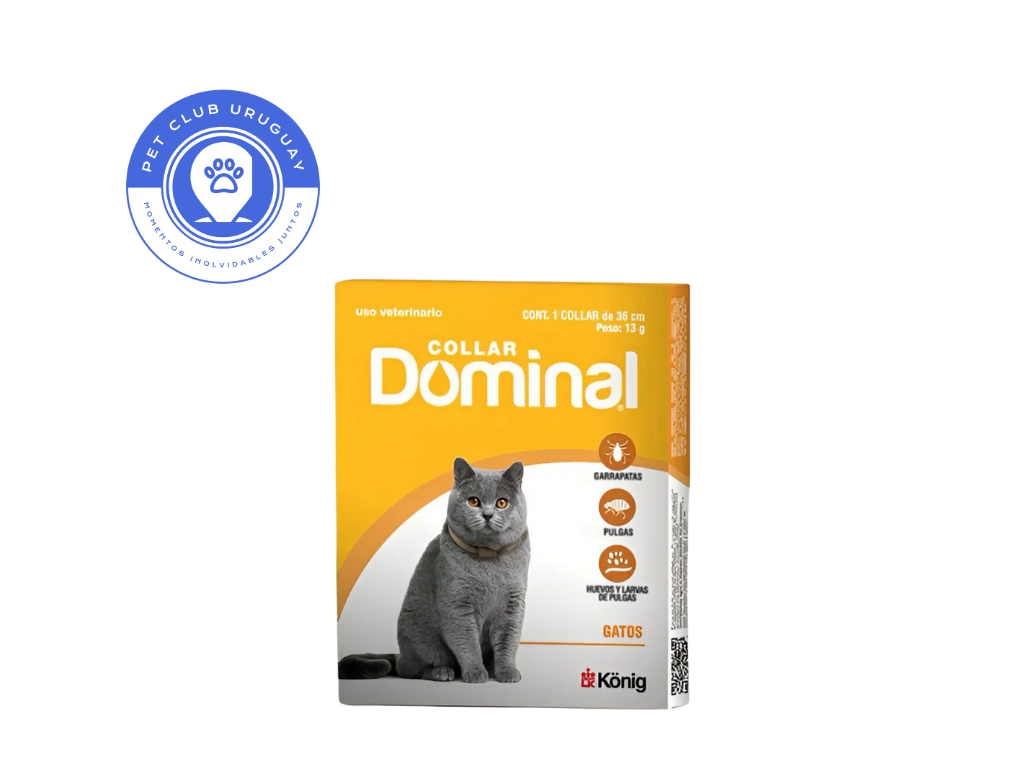 Dominal te ofrece una solución práctica, segura y de largo plazo para mantener a tu gato libre de las molestas pulgas y garrapatas. Este collar antiparasitario está diseñado específicamente para la anatomía felina, proporcionando una barrera de defensa continua y efectiva.