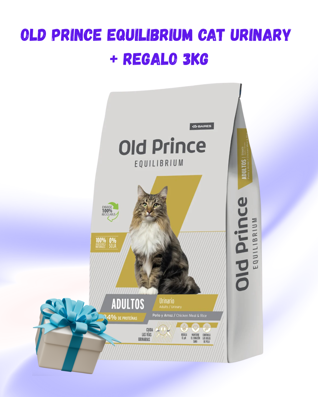 Harina de pollo, arroz, gluten de maíz, albúmina en polvo, trigo, grasa animal (pollo), aceite de pescado (fuente de omega 3), hidrolizado proteico de menudencias porcinas, pulpa de remolacha (fuente de fructo-oligosacáridos – FOS), levadura de cerveza, fuente de fibra insoluble (celulosa), sal, acidificante en polvo (bisulfato ácido de sodio), extracto de yucca schidigera, manano-oligosacáridos – MOS, nucleótidos de levadura, carbonato de calcio, dipropionato de amonio, ácido propiónico, pirofosfato ácido de sodio, glucosamina, condroitin sulfato, colágeno hidrolizado, L-carnitina, metionina, antioxidantes naturales: extracto de romero, ácido cítrico, vitamina C, betacaroteno, luteína, polifenoles, taurina, vitaminas: A, D3, E, K, B1, B2, B6, B12, ácido fólico, ácido nicotínico, pantotenato de calcio, biotina, colina, minerales: zinc, hierro, cobre, manganeso, yodo, selenio.