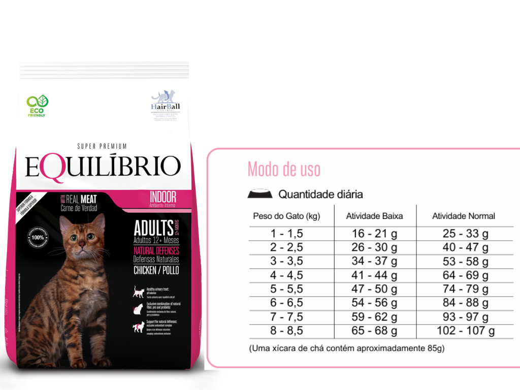 Equilibrio Gatos Adultos con Pollo es un alimento premium formulado especialmente para gatos adultos. Su fórmula avanzada favorece un trato urinario saludable, ayudando a prevenir la formación de cálculos urinarios. Contiene un complejo antioxidante exclusivo que fortalece las defensas naturales, y una combinación de fibras naturales, prebióticos y probióticos que promueve la salud intestinal y una digestión equilibrada.