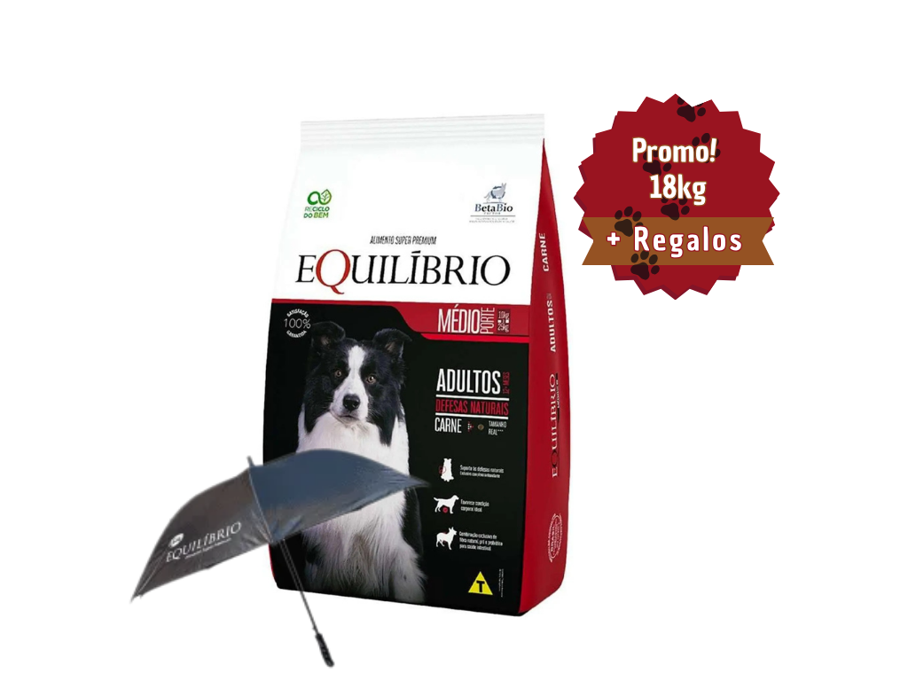Equilibrio Adultos con Carne para razas medianas es un alimento completo y balanceado, diseñado para perros adultos. Refuerza el sistema inmunológico gracias a un exclusivo complejo antioxidante, mejora la calidad de las heces (más firmes, con menos olor) y favorece una digestión saludable gracias a su mezcla de fibra natural, prebióticos y probióticos.