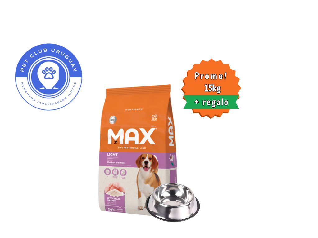 El control y la prevención de la obesidad son fundamentales para el bienestar y la salud de los perros. Max Light Pollo & Arroz, es un alimento Premium Especial, cuidadosamente elaborado para el control del peso en perros adultos. Su formulación posee el equilibrio ideal de fibras, grasa y proteínas, conteniendo todos los nutrientes necesarios para mantener a los perros sanos y en buena forma. Además, cuenta con L-Carnitina, que ayuda en la pérdida y control del peso en perros adultos.