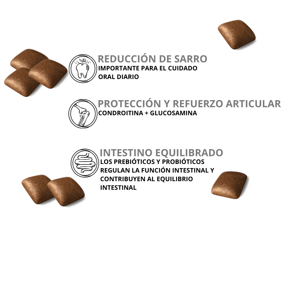 Perfecto para perros adultos de razas medianas y grandes. Serví la cantidad adecuada según su peso y nivel de actividad, asegurando siempre agua fresca y un lugar seco para conservar el alimento.