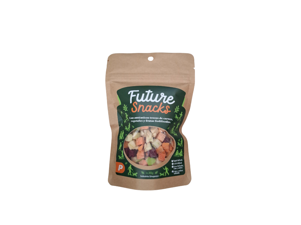 Ingredientes seleccionados fuentes de proteínas, aceites, ingredientes funcionales, vitaminas y minerales, mín. 55% (harina de vísceras de aves – mín. 23%, aceite de aves, aceite de salmón – mín. 0,5%, hidrolizado de hígado de aves, mezcla de huevos deshidratados – mín. 1,5%, salvado de gluten de maíz, salvado de soya, biomasa de microalgas Schizochytrium sp. – mín. 0,1%, levadura de cerveza inactiva deshidratada, mezcla prebiótica – mín. 0,1% – compuesto de: pared celular de levadura, galacto-oligosacáridos, fructo-oligosacáridos y levadura de caña de azúcar seca, hexametafosfato de sodio, sulfato de condroitina, sulfato de glucosamina, extracto de Yucca – mín. 0,01%, lisina, vitaminas A, D3, E, C, K3, B1, B2, B6, B12, pantotenato de calcio, ácido fólico, ácido nicotínico, biotina, cloruro de colina, minerales cloruro de sodio, cloruro de potasio, sulfato de manganeso, sulfato de zinc, glicinato de zinc, sulfato de hierro, sulfato de cobre, yodato de calcio, selenito de sodio, selenio metionina). Frutas, vegetales, granos y aditivos esenciales, mín. 45% (grano de maíz, salvado de trigo, arroz quebrado, mezcla concentrada de frutas y vegetales deshidratados – compuesta por: harina de papa dulce, manzanas – mín. 0,03%, plátanos – mín. 0,03%, arándanos, zanahorias – mín. 0,03% y harina de arvejas – mín. 0,05%, pulpa de remolacha deshidratada – mín. 0,5% y aditivos antioxidantes BHA y BHT).