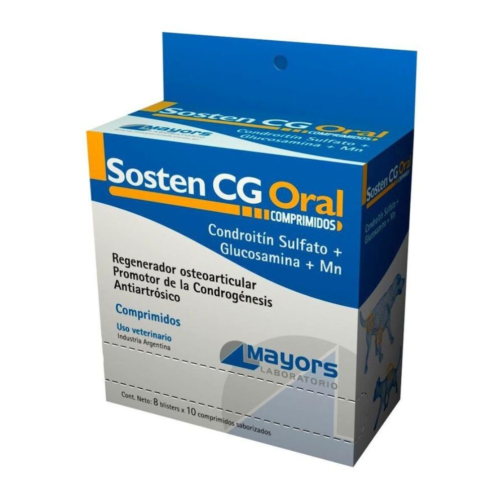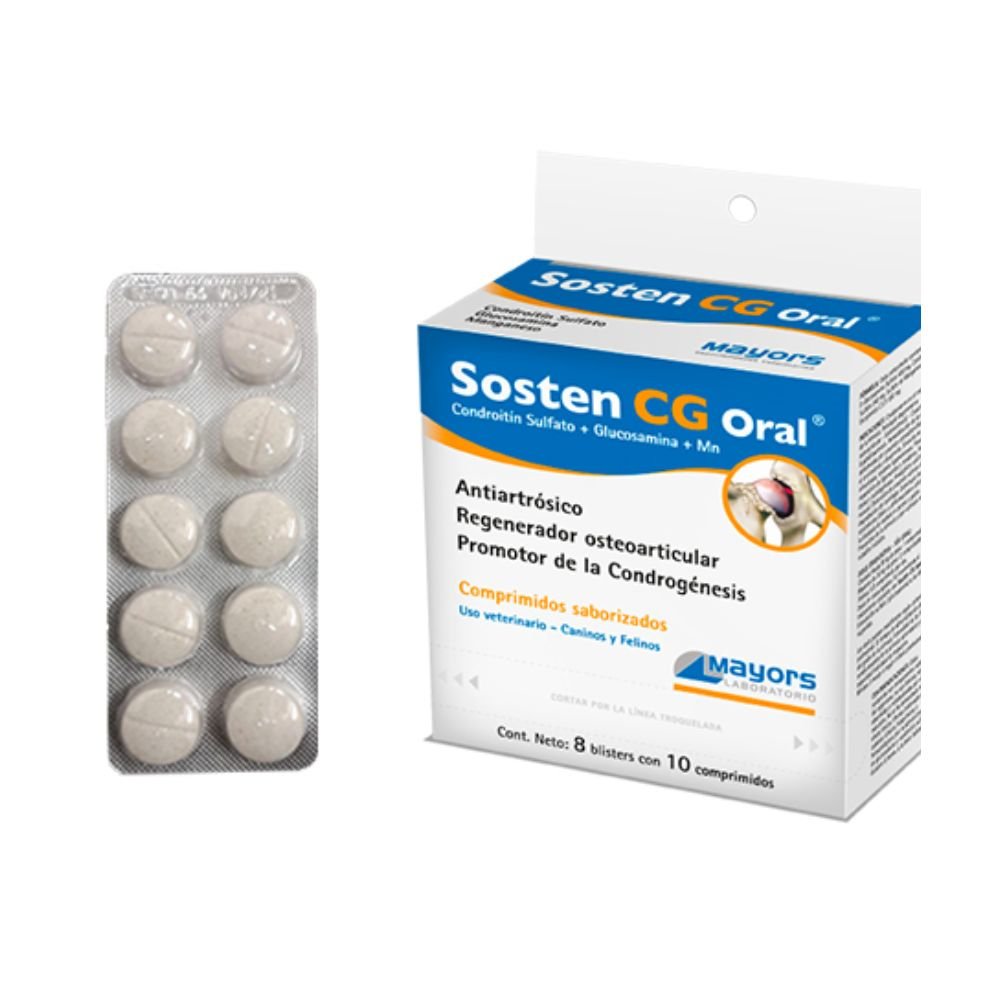 Sostén CG Oral es un suplemento nutricional en comprimidos, formulado para ayudar en el mantenimiento de la salud articular en perros y gatos. Su combinación de glucosamina y condroitina favorece la regeneración del cartílago, mejora la movilidad y contribuye a reducir el desgaste articular, especialmente en animales mayores, deportistas o con predisposición a problemas osteoarticulares.